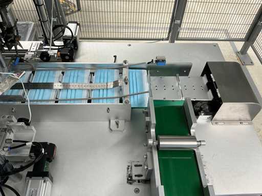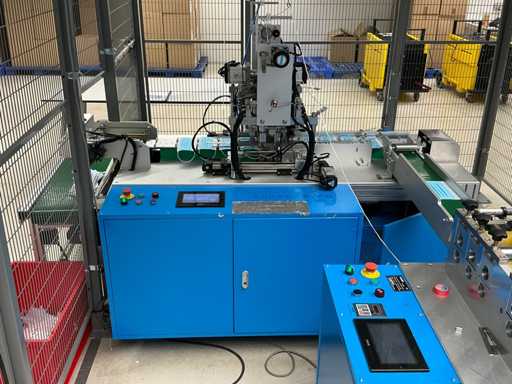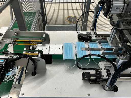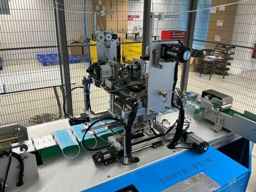 Producer Zhengye Technology; Surgical mouth mask type llR, blue, elastic; Power 6.5kw; real capacity 3,000 per hour; mask size LxW 175mmx95mm; equipped with Troax Smartfix safety cage