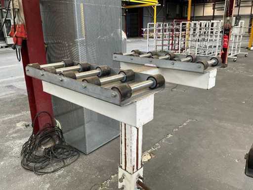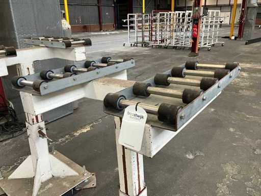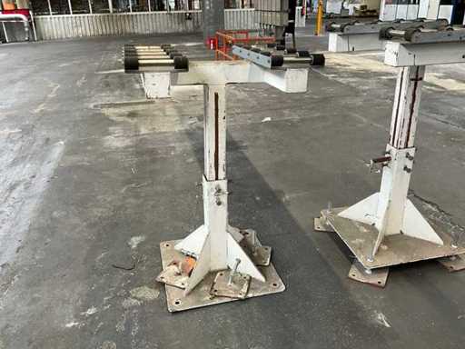 mounted on heavy profile steel height-adjustable base; equipped with plastic rollers;