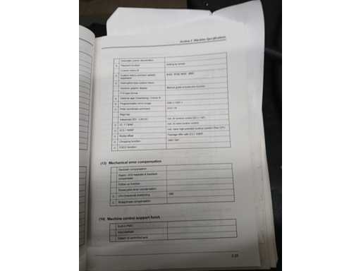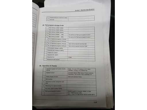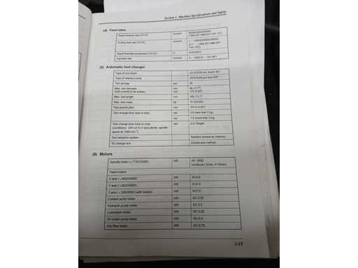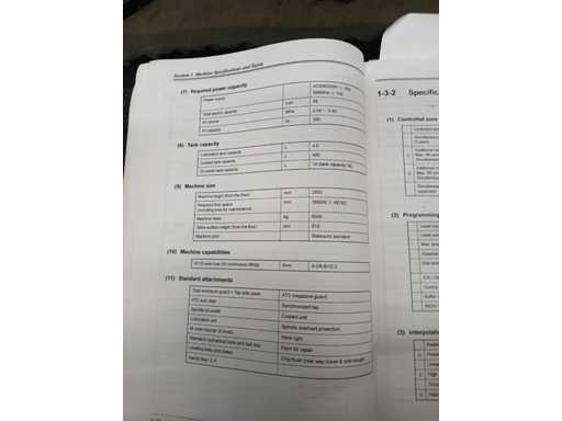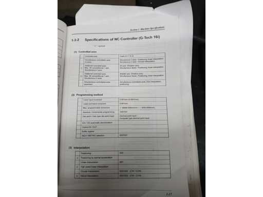 Includes: Full Housing & Top Cover, ATC Magazine Cover, ATC Auto Door, Synchronized Tap Function, AD-TAP Function, IPC Function, Spindle Oil Cooler, Refrigerant Unit (Rear Chip Discharge), Lubrication Unit, Spindle Overload Protection, 9 Types of M Code Counters, Work Light, Chip Discharge (Y-Axis Cover and Side Trough), Coolant Nozzle Unit, Working Surface mm 1,150 x 550, Max Tool Length mm 350, 10.4" Color LCD, Vertically Mounted Soft Keys, Compact Flash port, PC file management structure.