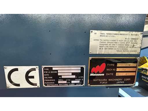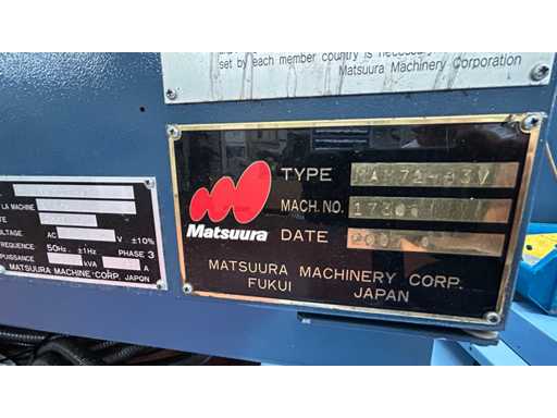 Features: Matsuura G-Tech 30 control, 5 simultaneous axes, rotary table, three-phase motor 415 V / 50 Hz, power 69 kVA, serial number 17306