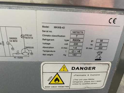 Maxxfrost MKWB-4D - Stainless steel refrigerated workbench 223cm