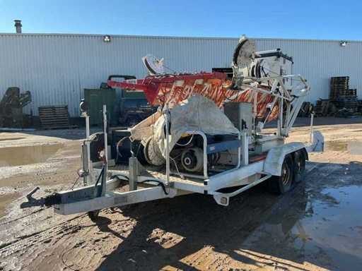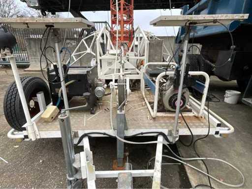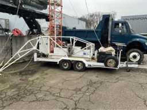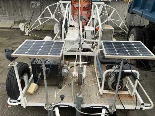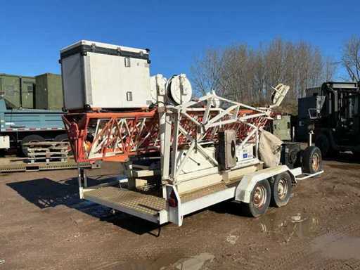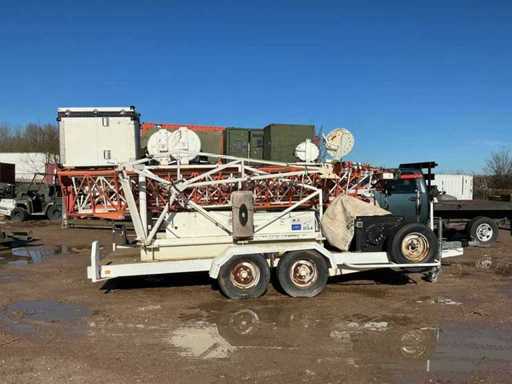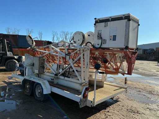 Movable on a mobile trailer, electrically hydraulically operated with generator, cable reels, 2x rear outrigger. Maximum extended height 20 meters