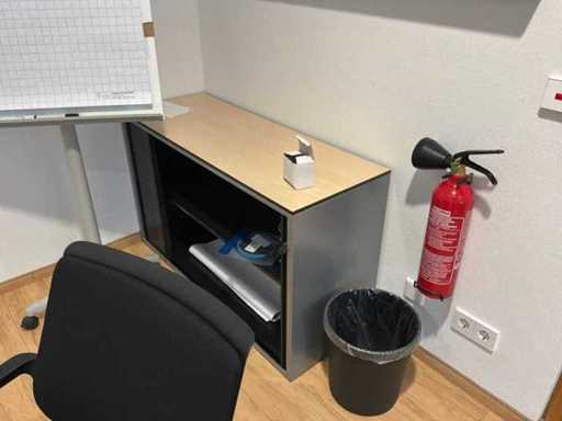 Best. made of: 1 table 2000 x 800, 6 cantilever chairs fabric cover black, 1 sideboard 1,200 mm high, 1 sideboard 600 high, 3 wall-mounted acoustic panels, 1 mobile flip cabinet