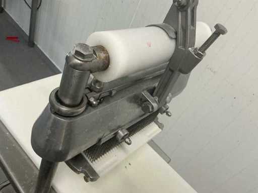 Sale due to discontinuation of business. Professional meat skewer in working and excellent condition. • Professional meat skewer / meat tenderizer on foot, intended for the catering / butcher's shop.  • Stainless steel construction and standard mounted on a foot-stand (frequent in