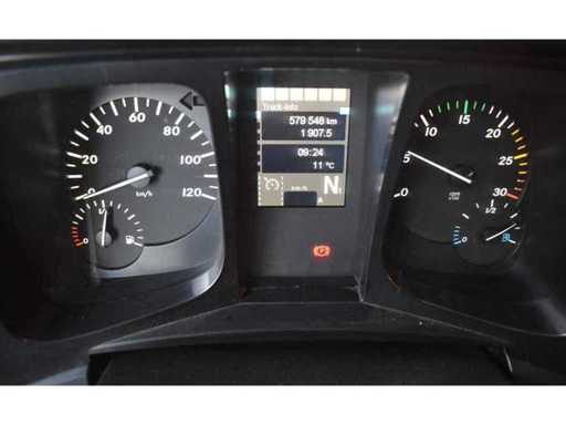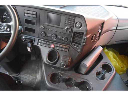 Internal number: 9695, KM: 579.548, Registration date: 03.03.2016, Drive type: Diesel, Transmission type: Automatic, Engine power: 235 kW, Displacement: 7,698 cc, Number of axles: 3, Wheel formula: 6x2, Environmental sticker: 4 (green),Emission class: Euro VI, Cab: Local transport, Colour: white, Permissible total weight: 28,000 kg, Empty mass: 10,160 kg, Payload: 17,840 kg, Note: Gearbox damage, only drives backwards.