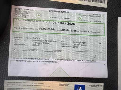 Trailer chassis number: VAK656EBDH1613851/ year of manufacture: 3/04/2017/ capacity: 9/10 cars. Equipped with Kassbörger metagopro superstructure, hydraulic extension ramps and various stackers.