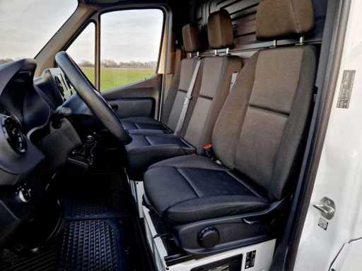 This commercial vehicle has the following options: 12 Volt connection, 2 seats right front, Reversing camera, Driver airbag, Air conditioning, Class 1 alarm (immobiliser), Anti Lock System, Anti Slip Control, Apple Carplay & Android Auto, Front armrest, Audio installation, Tire pressure monitoring system, Driver's seat adjustable in height, Concrete plywood in cargo space, Bluetooth phone, On-board computer, Exterior mirrors electrically adjustable and heated, Bumpers in body color, Central locking with remote control, Cruise control, DAB, Third brake light, Low beam automatic, Electrically operated windows, Hill hold function, Wooden floor in cargo space, LED daytime running lights, LED headlights, MP3 connection, Multimedia screen medium, Multimedia system, Parking camera, Radio / MP3 player, Rain sensor, Start/stop system, Immobiliser, Steering wheel adjustable, Power steering, Steering wheel multifunctional, Partition full, Fatigue recognition, Heat-resistant glass, Side sliding door on the right, Cargo space side wall trim, Crosswind assistant, Black headliner and 110 HP !! CV joints make noise. Dimensions of cargo space: L x W X H = 3.30 X 1.80 (1.35 wheel arch) X 1.95 (1.85 door).
