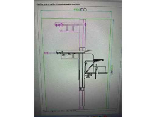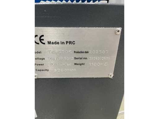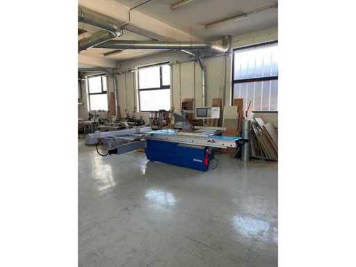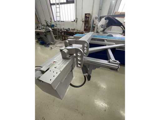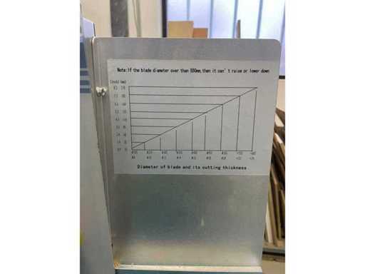 Serial Number: 2025072501 • Power: 10.14 kW (main saw motor) • Condition: Used • Additional Notes: Made in PRC. Production date: 2025-07. Voltage: 380 V, 3-phase, 50 Hz. Rated cutting capacity: 3200 mm. Sliding table length options 3200/3600/3800 mm (installed model shown as long table). Max cutting thickness 210 mm. Max blade diameter 600 mm (≥550 mm blade cannot raise or lower). Scoring blade diameter 120 mm. Main spindle Ø30 mm, scoring spindle Ø20 mm. Servo-controlled rip fence and cross-cut ruler. Automatic blade tilt 90–45°. Touchscreen CNC control with MESAMAC Master Cut software.