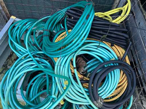 Mesh cage with garden hoses