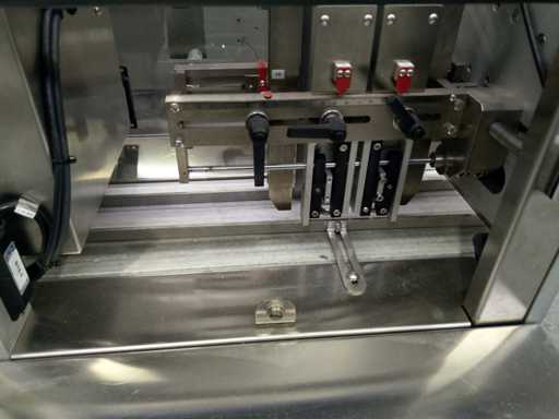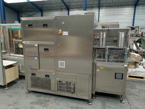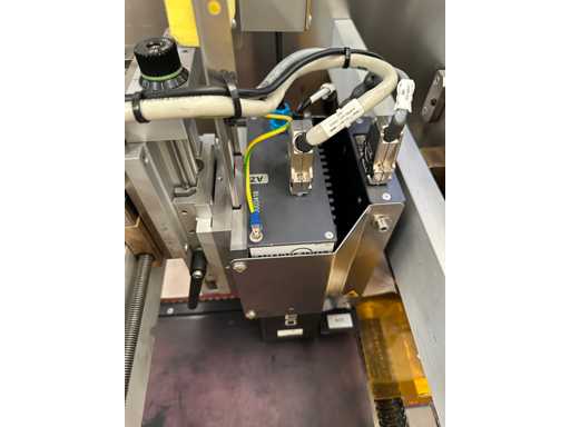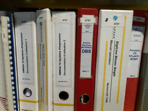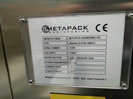 Manufacturer: Metapack – Atlantic Zeiser Model: Digiline Blister Single Year: 2017 Serial Number: 17099 Printed on blister packs Unstacking of the blisters at the inlet (2 trays), then printing Camera system for print verification, with ejection of non-conformities Touch control screen Throughput: 120 blisters/minute Omega72HD Printhead – 720 dpi resolution CE compliant Power supply: 400 V 3-ph + N + PE / 50 Hz Pneumatic feed: 6 bar Power: 6.2 kW Overall dimensions (W x D x H): 2750 x 1320 x 1920 mm Weight: 2.000 kg Technical documentation: available, details on request Ref. 4787