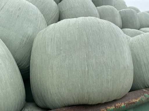 Consists of: batch of 100 pieces mini bales 65kg, corn 2025, pack diameter 500x500mm, long shelf life: up to 1 year in closed packaging, composition: 100% chopped corn, shelf life after opening: 1-3 weeks, small corn bales of 65 kilos, ideal for people with few animals or for those who do not have a machine to move heavy packs of corn.