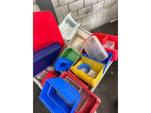 A large plastic box full of plastic containers. Plastic box is not part of the auction. Only the content.