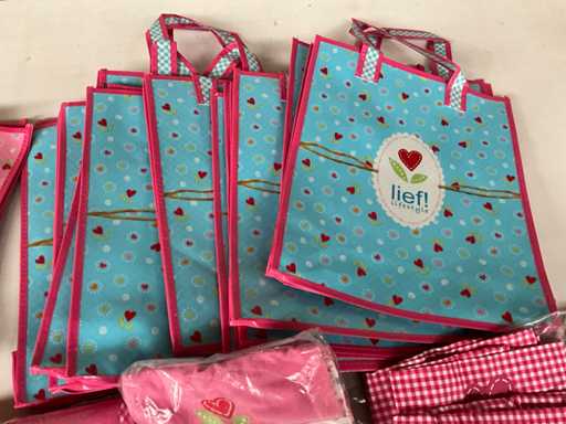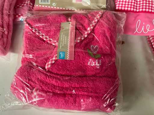 Lot consisting of; various bags, 3x blanket 100 x 150 cm, 1x changing mat cover, 2x Bath cape 75 x 75 cm, 1x bathrobe 0-12 months, 15x cushion cover 45 x 45 cm.