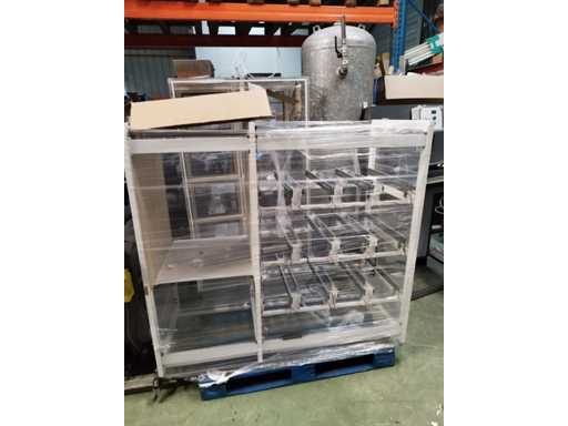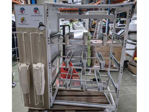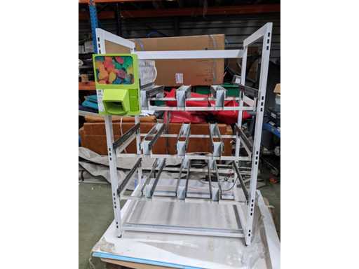 - 3 shelves with 12 bins width 92 cm x depth 65 cm x H136 cm