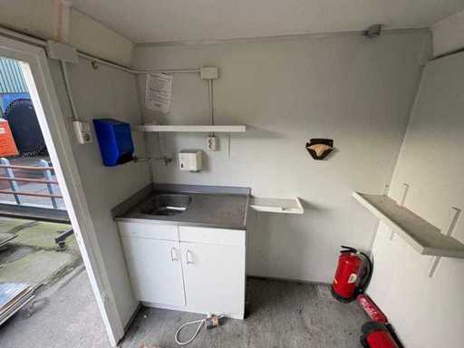 Mobile on tandem axle; canteen area; toilet; storage space; washbasin; electric water heater; damage to the ceiling (hole in the roof); electricity and water supply untested; license plate LLH-60-X
