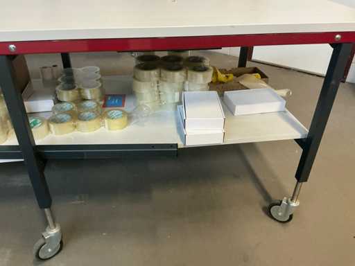With contents, 1x Ergo Swiss table 250x92cm, height adjustable, 1x table 160x80x90cm