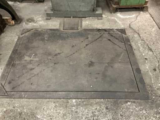 Weighing platform partly incorporated in floor / to be dismantled by copper
