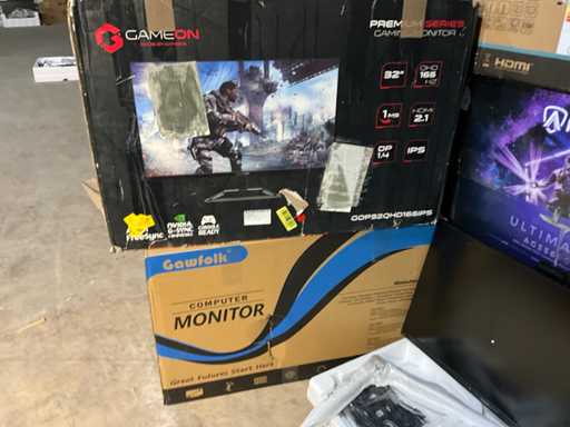 Consisting of various brands and types of return monitors, including: GameOn premium series 32"