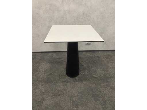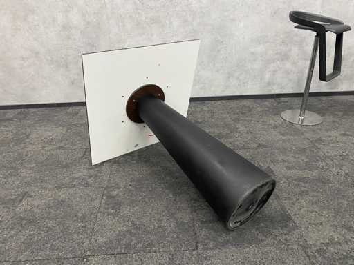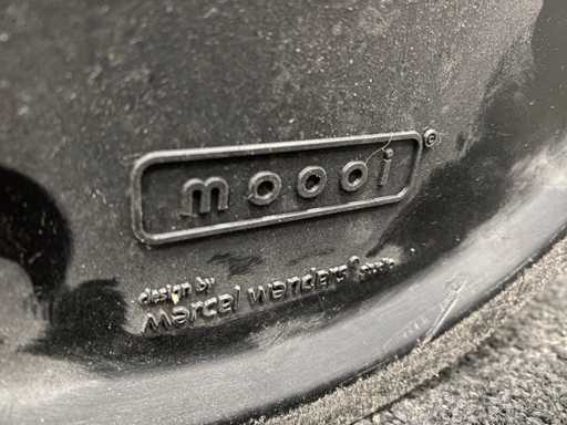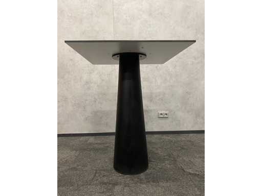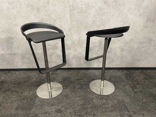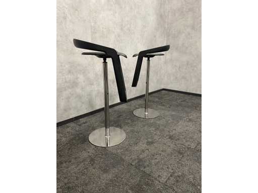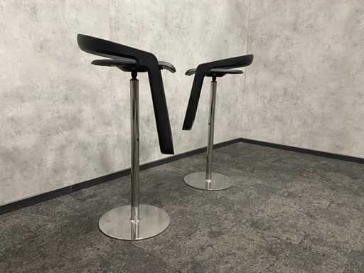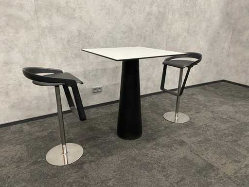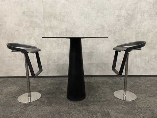 lot consisting of 2x Johanson design Piano bar stool with black polyurethane seat and chrome base with footrest -- 1x Moooi container design table by Marcel Wanders.