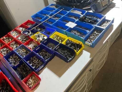 Various types and sizes of Stainless Steel Bolts and Lock nuts, tension pins in 41 trays