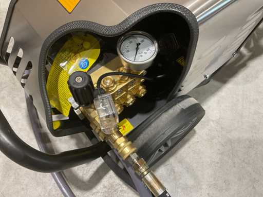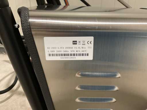 Equipped with 10M high-pressure hose, steel braided; Stainless steel lid; copper triplex piston pump; Water flow rate: 3.7GPM 14.0L/MIN; 200 bar; Speed: 1450 rpm; 4.0kw; 380V; Weight (KGS): 68; Dimensions L*W*H(MM): 730*545*620; Unused in box (Dimensions transport packaging 730x545x620 mm lxwxh, weight 68 kg)