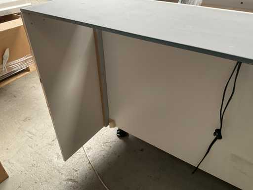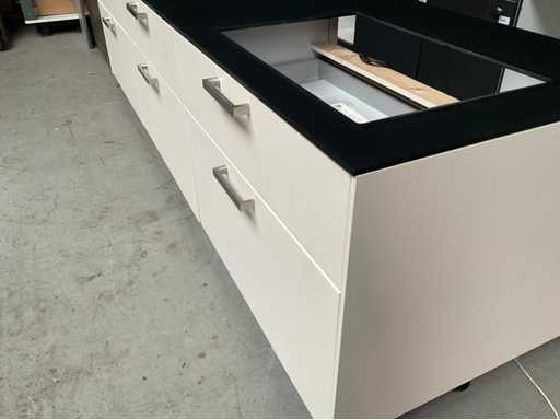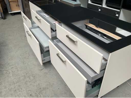 Next125 Kitchen island with colorglass countertop and Blum drawer runners