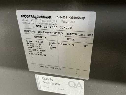 Nicotra Gebhardt RZR 13-1000 LG/270 Industrial Radial Fan