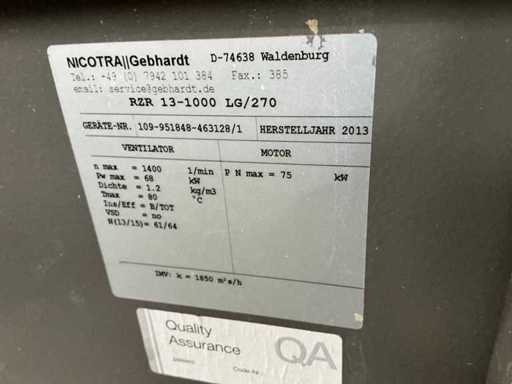 Nicotra Gebhardt RZR 13-1000 LG/270 Industrial Radial Fan