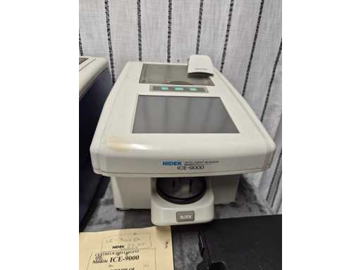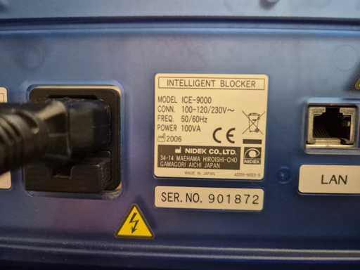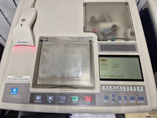 Nidek LE-9000SX Express String Trimmer with ICE-9000 Ascender The Nidek LE-9000EX machine allows for faster processing and cutting. It is equipped with a direct-drive motor and a robust construction The ICE-9000 is a revolutionary blocker and tracer combination that reads single vision and bifocal lenses, as well as printed and pre-identified laser marks on progressive lenses, increasing workflow and saving time ITEM IN GOOD CONDITION AND GOOD WORKING