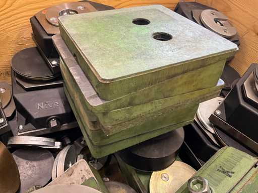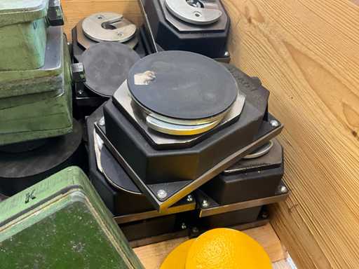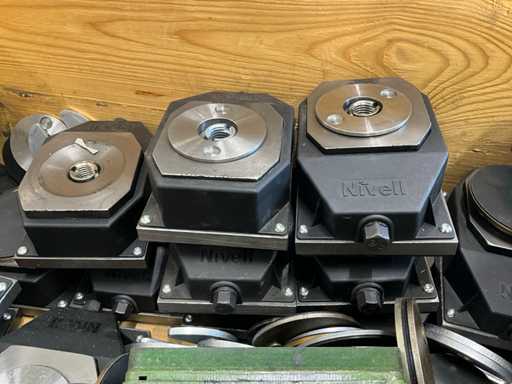 Height adjustable, various designs and sizes, 36 pieces "Nevill Type BW-Fixator RK II", 9 various leveling blocks, 12 supports (yellow), weight estimated approx. 450 kg, see photos for more details