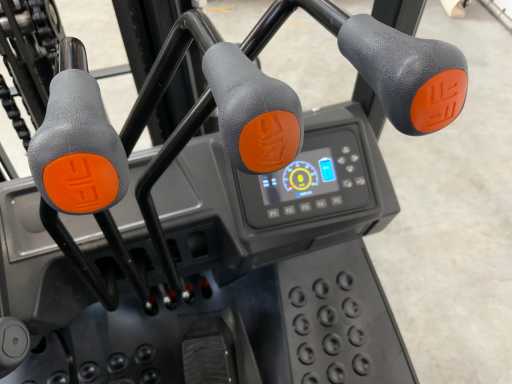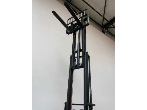 unused; all functions work; triple mast; free lift; 4 levers - raise and lower - tilt - side shift - shifter ; 80v; power rated 11Kw; Lithium battery (Li-ion); Battery charger; working; 6247
