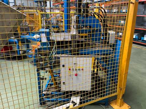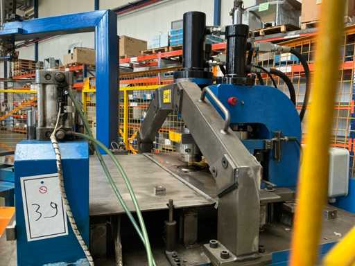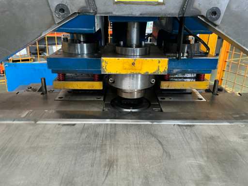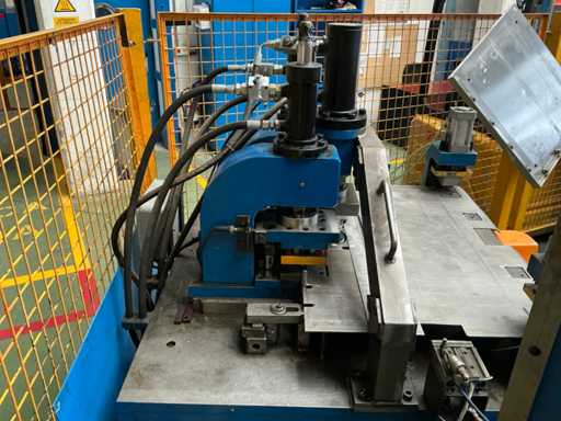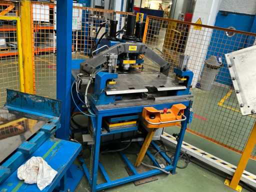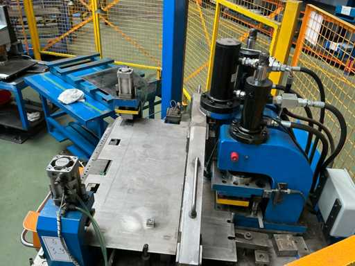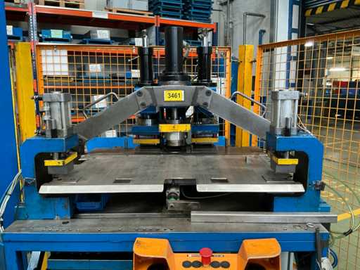 Hydraulic notching and punching machine for sheet metal, equipped with guarded working area and separate operator console.