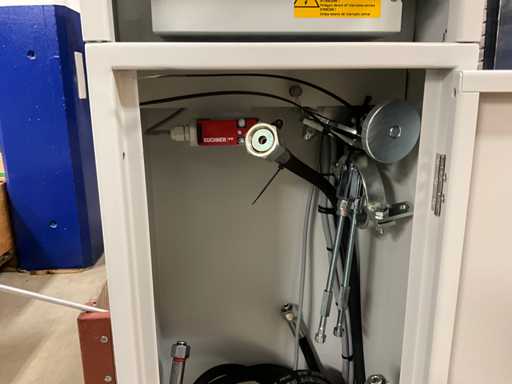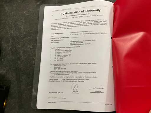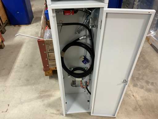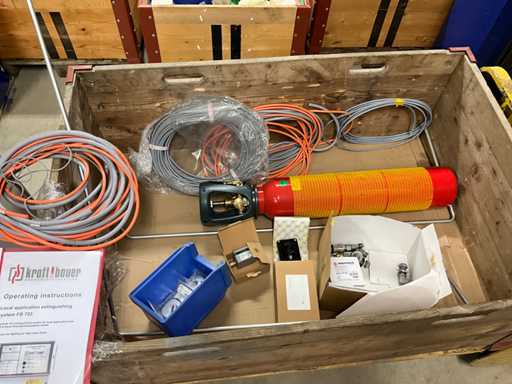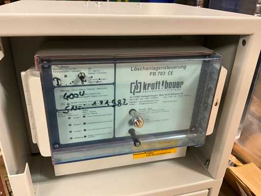 Extinguishing system control in metal cabinet, documents available with EC declaration of conformity, dimensions 300x350x1340mm, including CO/2 pressure bottle, pipes and accessories, dismantled, see photos for more details