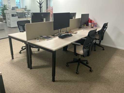 Consisting of: Bralco 6x desk (160x80x75 cm), 6x office chair and 3x chest of drawers, 1x coat rack. Monitors, docking stations and other goods are not included.