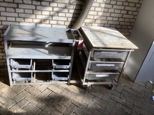 Left standing steel cabinet 97x40x78 centimeters ; Right stainless steel drawer cabinet 75 x60 x 82 centimeters mobile with wheels stainless steel
