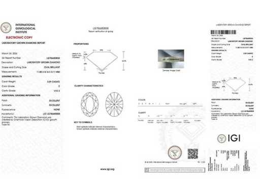 This lab-grown diamond comes with an official IGI certificate and report confirming its quality. View the certificate in the photos or refer to the table above for the detailed specifications. All characteristics have been taken directly from the accompanying IGI report.