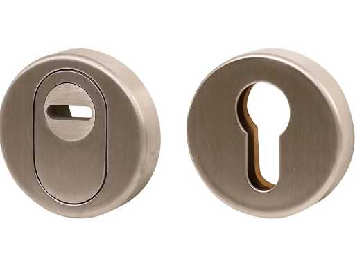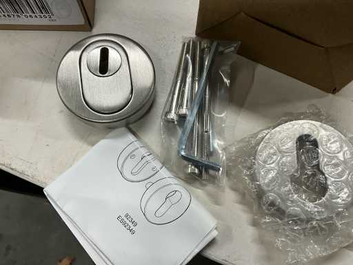 Unused new in packaging; Stainless steel AISI 304 (A2). Outer shield with stainless steel core pull protection; Rosette size Ø 52x11.5 mm; Including 2 sets of stainless steel screws M5x50 mm and M5x75 mm Model rosette Round Material door fittings Stainless steel Length (mm) 52 mm Width (mm) 52 mm Thickness (mm) 11.5 mm Inner shield thickness (mm) 11.5 Min. door thickness (mm) 40 mm Max. door thickness (mm) 72 mm Diameter (mm) 52 mm Color F1 Surface coating Matte Surface treatment Brushed Quality class Stainless steel A2 SKG quality mark SKG3 With core pull protection Yes