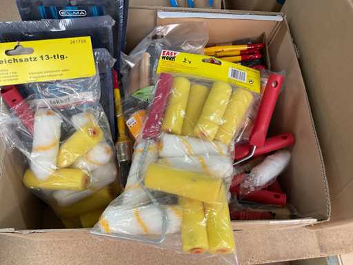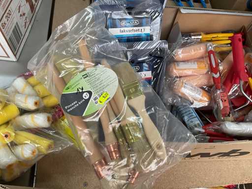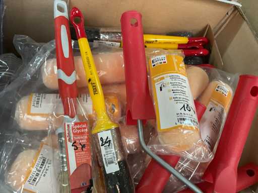 Paint roller set; paint brushes; paint roller with bracket; Spare flock rolls