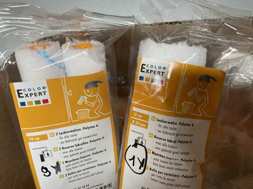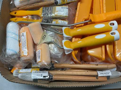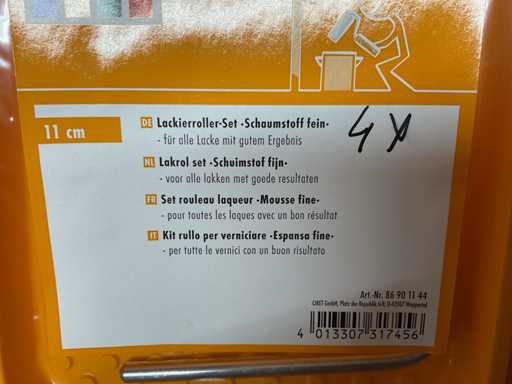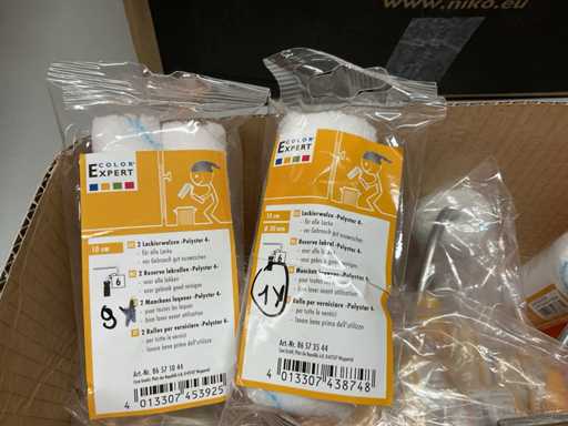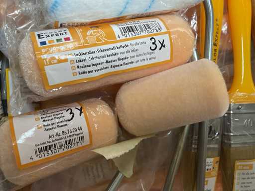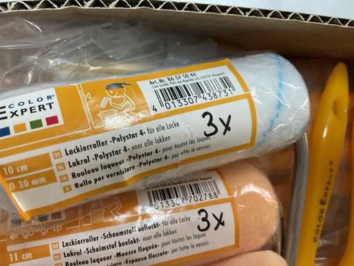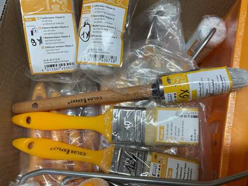 Paint roller set; paint roller with bracket; spare coils; pointed brushes; Lacquer brush