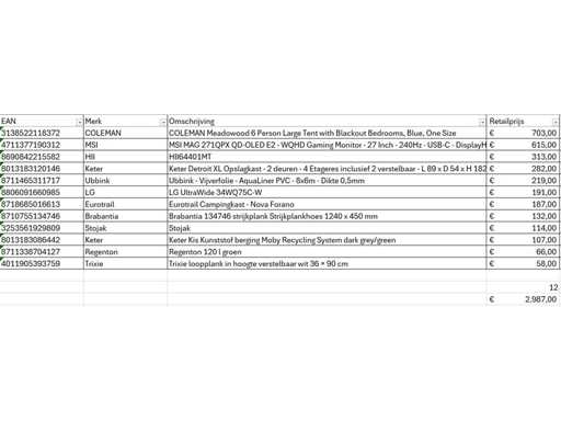This concerns a batch of A-brand returned goods from a large online retailer. The batch consists of various product categories. Number of pieces: 12. Retail value: €2987,- Unchecked: operation unknown (mix of