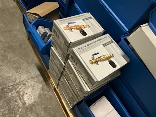 Different types and sizes on 1 pallet with plastic storage bins.