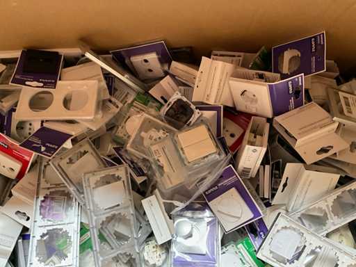 Lot consists of various brands such as; Busch-Jaeger, Siemens, Schneider and Berker. Without pallet.