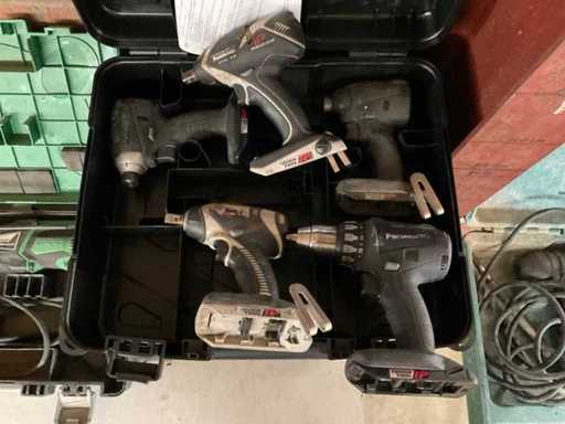 (2x) screwdriver, (2x) impact wrench, (1x) drill. Various models. Please note! Without batteries and battery charger.