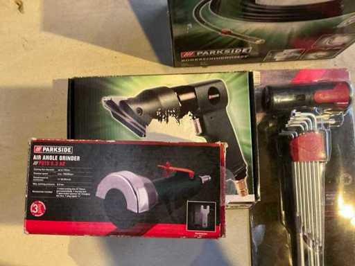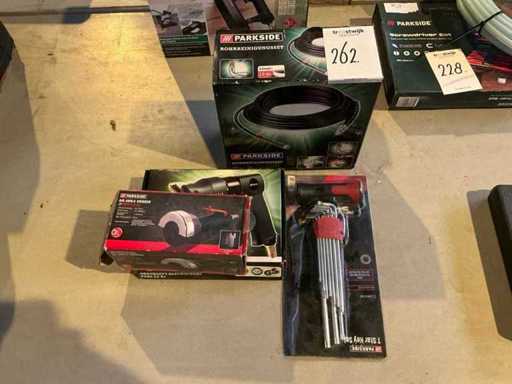 Includes "Parkside" pipe cleaning set, angle sander, Torx T key set.