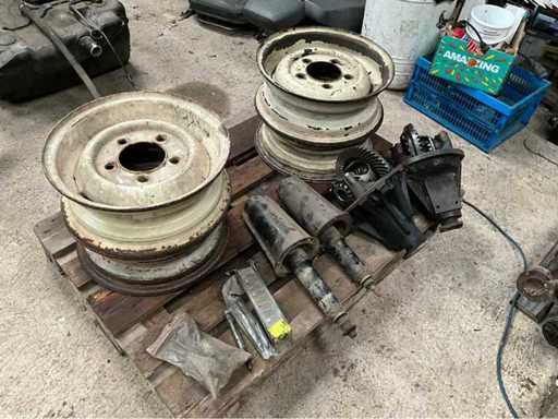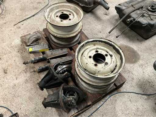 2x fuel tanks, 4 rims, injectors for 200TDI, 2x differential, 2x strut and shock absorber, multiple drive shafts and transfer case with ratio 12:1.