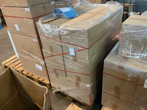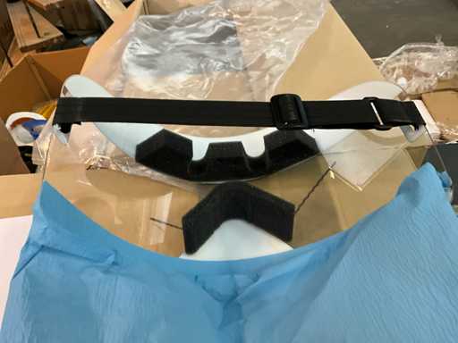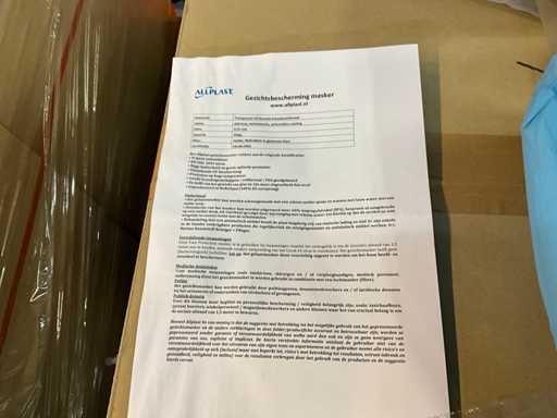 12 boxes with 20 pieces, Polycarbonate screen, flap for mouth protection, Elastic band,