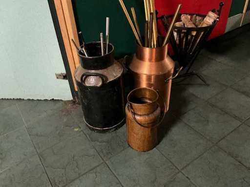 3 milk cans and fire pit.; This lot is located on the 1st floor and there is no elevator