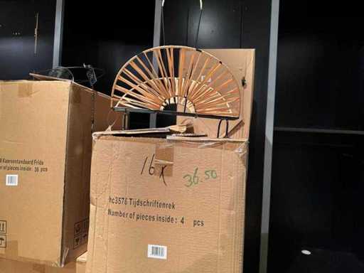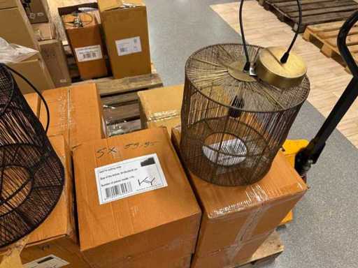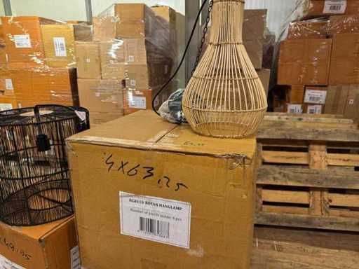 6x €19,95 decoration 16x €36,50 magazine rack 8x €49,95 pandent lamp 4x €39,95 wall lamp 6x €24,95 candle holder 6x €39,95 wall lamp 5x €59,95 Ceilling lamp 4x €63,25 Rattan pendant lamp 3x €49,95 ceilling lamp Retail value total €2,400