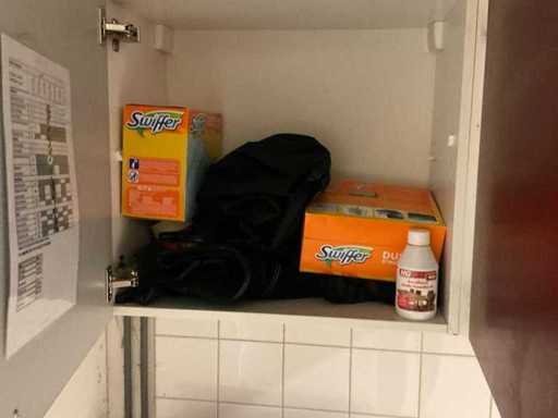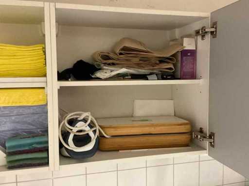 Including ironing board, cleaning cloths, laundry baskets, kettle, etc.