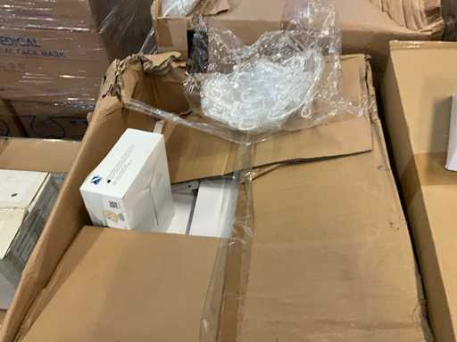 1x Box of German language Covid test kits, 17x Box of mouth screens 14cm wide